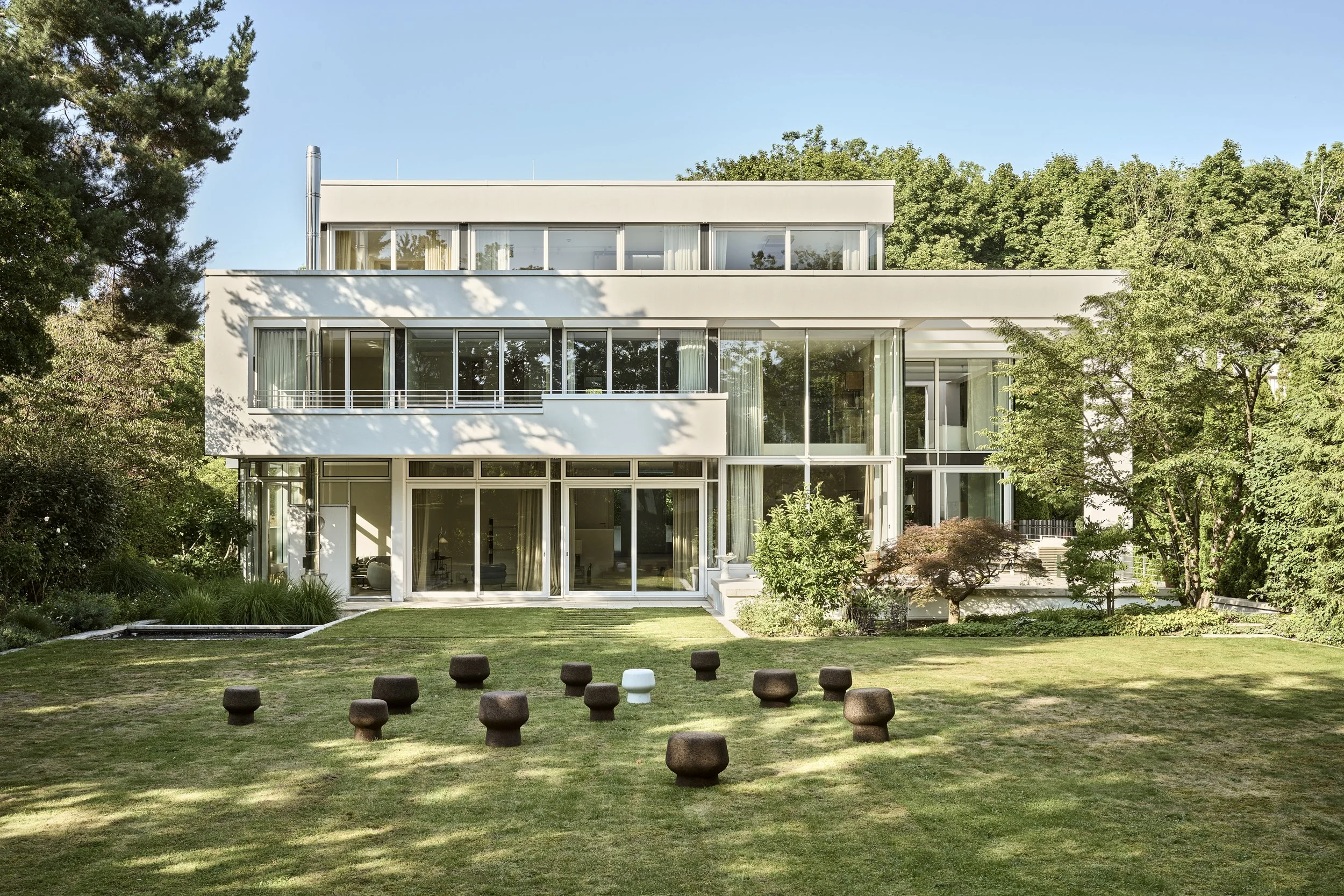im Garten einer modernistischen Villa in Bogenhausen.