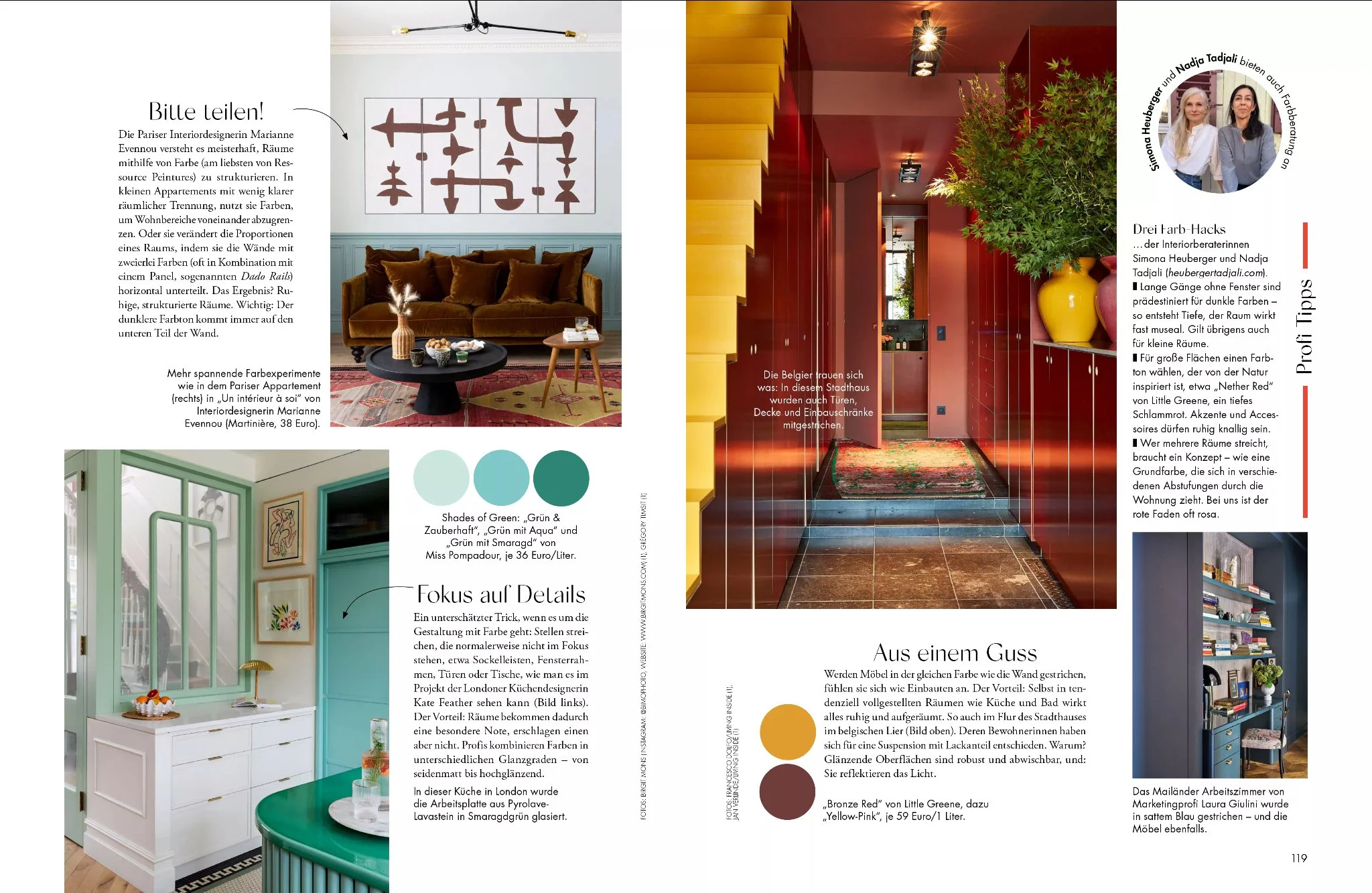 beschäftigt sich mit den Themen Stil, Wohnen und Design. Nach dem Studium der Kunstgeschichte in München und in London war sie Redakteurin bei Architectural Digest. Sie schreibt Wohnratgeber, arbeitet als Dozentin und Galeristin und als Journalistin u.a. regelmäßig für die Design-Ausgaben des SZ-Magazins und das Interior-Magazin Goodlife. Ihr grün gestrichenes Gartenhaus mit lila Fensterläden in ihrem Garten in München-Nymphenburg ist ein besonderer Ort für Ausstellungen und Events und das Studio von Heuberger & Tadjali.